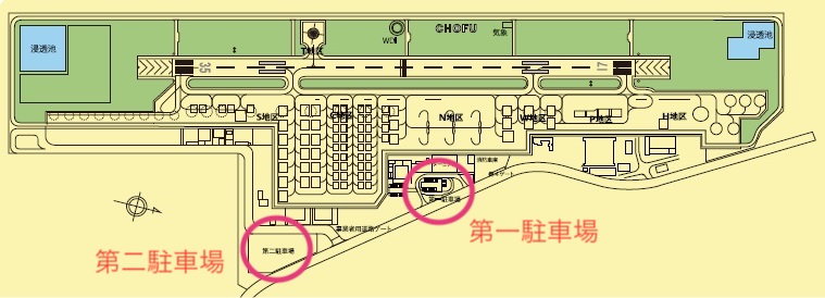 調布飛行場では、第一駐車場(ターミナルビル前)は25台、第二駐車場(ターミナルビルから100メートル)は150台を収容可能です。