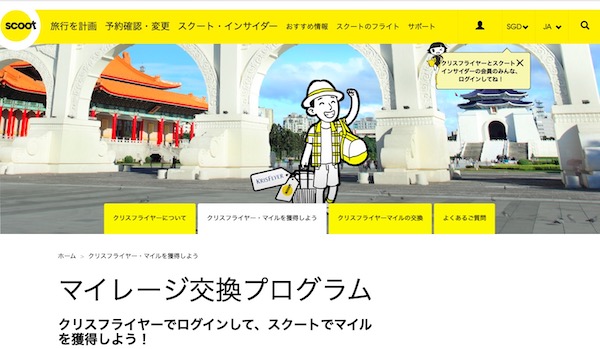 スクートを利用する際、マイレージプログラム「クリスフライヤー」を利用できます。