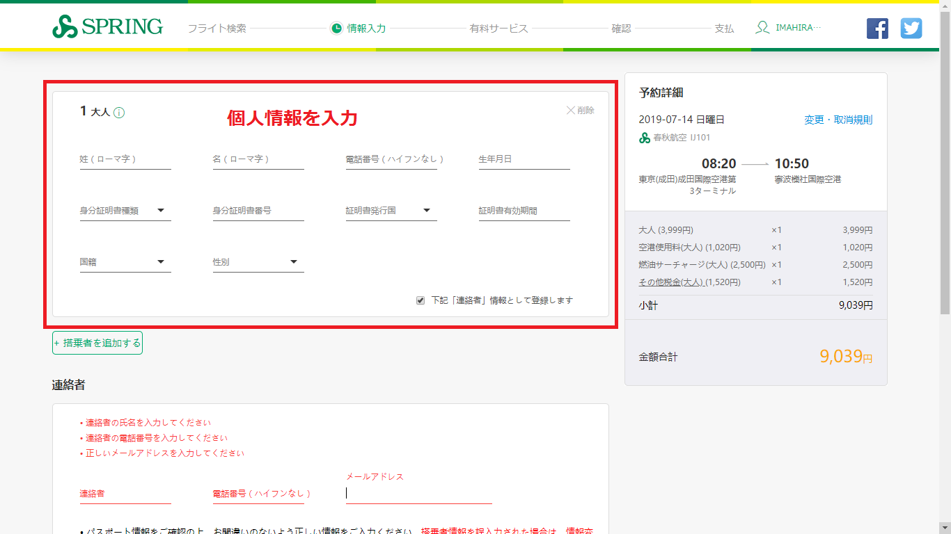 最後に改めて春秋航空の予約方法をまとめると、