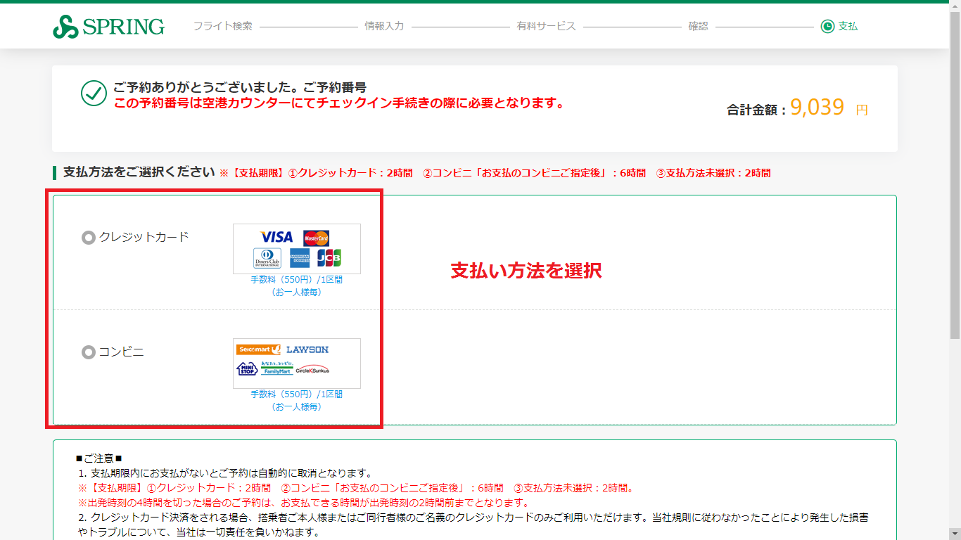 支払い方法を選択します。クレジットカードの場合は、個人情報を入力して決済すれば予約完了です。