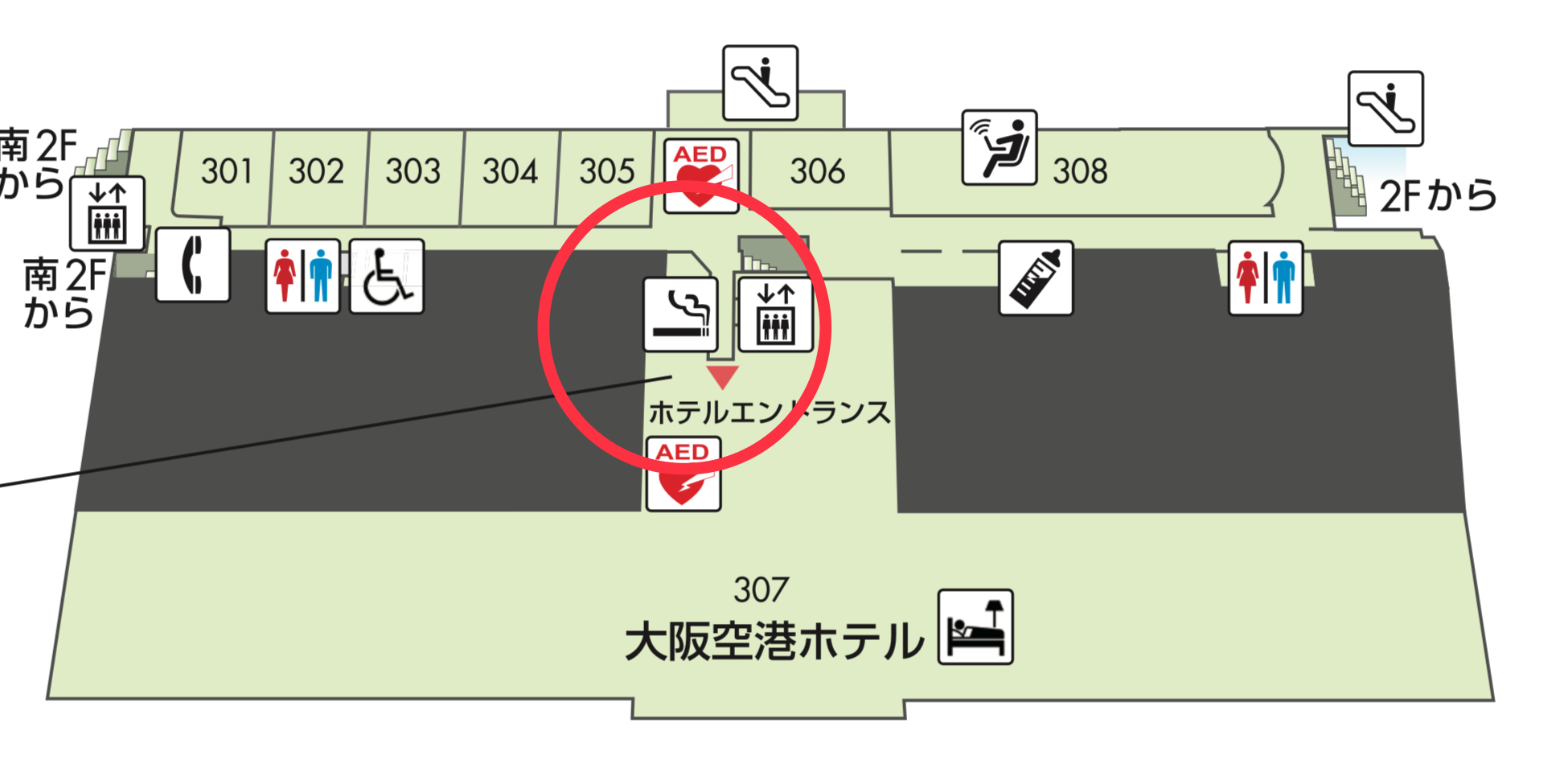 3階大阪空港ホテルには1か所の喫煙所があります。
