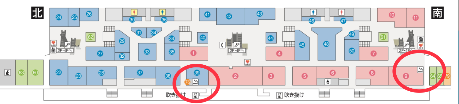 北ウイングには2か所の喫煙所があります