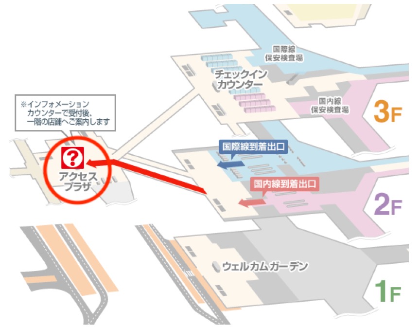 中部国際空港には、インフォメーションカウンターがアクセスプラザ内に設置されており、手続きなどはここで行います。