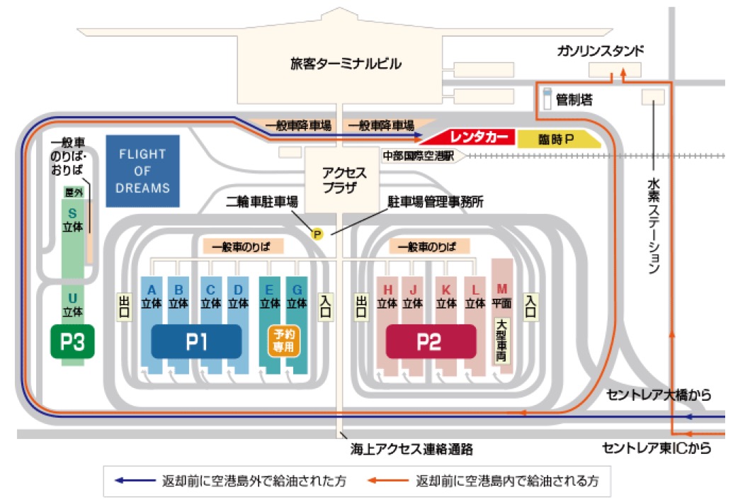 中部国際空港(セントレア)でレンタカーを返却する際は、返却ルートが定められています。
