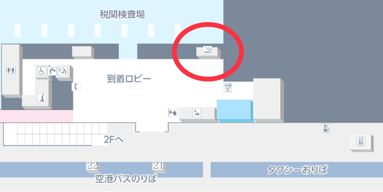 到着ロビー入り口から見て右奥に1か所喫煙所があります。