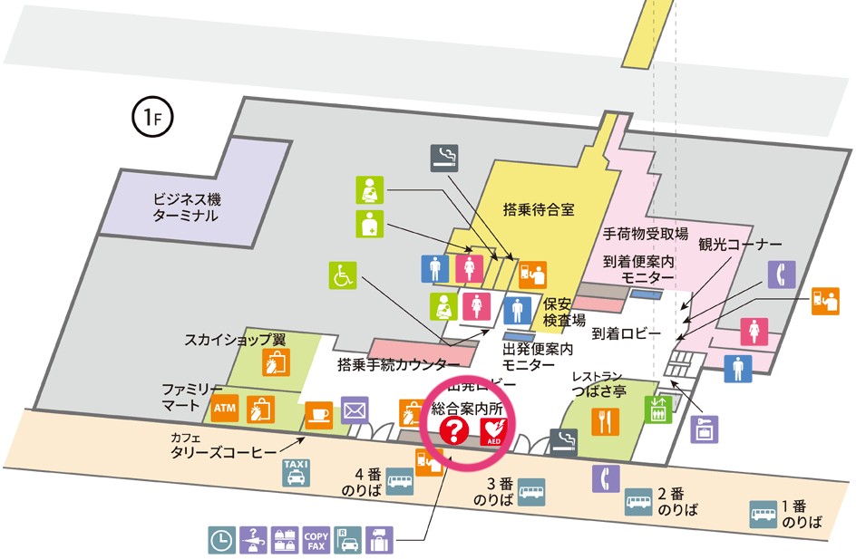 県営名古屋空港(小牧空港)には、総合案内所が空港ターミナル1階に設けられており、レンタカーの受付はここで行うことができます。