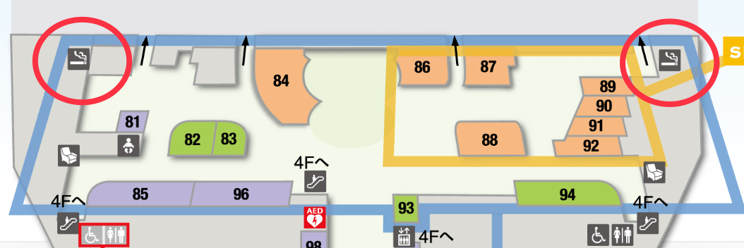 4階レストラン・ショップには、2か所の喫煙所があります。
