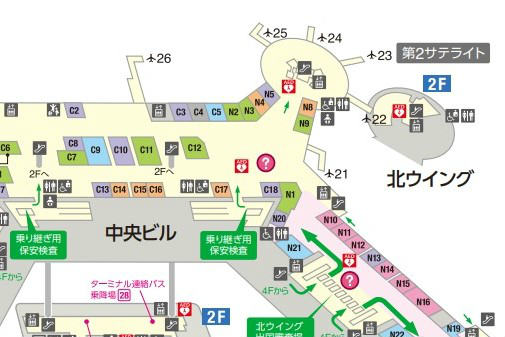場所は成田国際空港第1ターミナルの中央ビル3階にあります。上記地図の赤く囲った場所です。