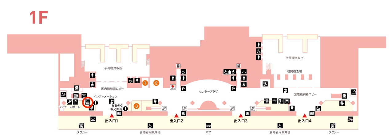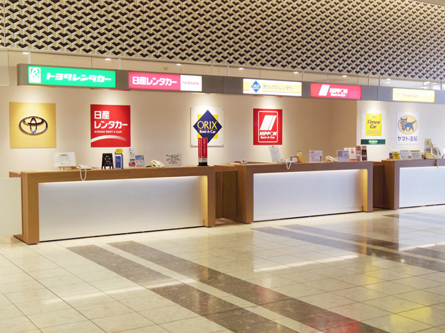 仙台空港には、レンタカー受付が旅客ターミナルの隣に設置されており、手続きなどはここで行います。