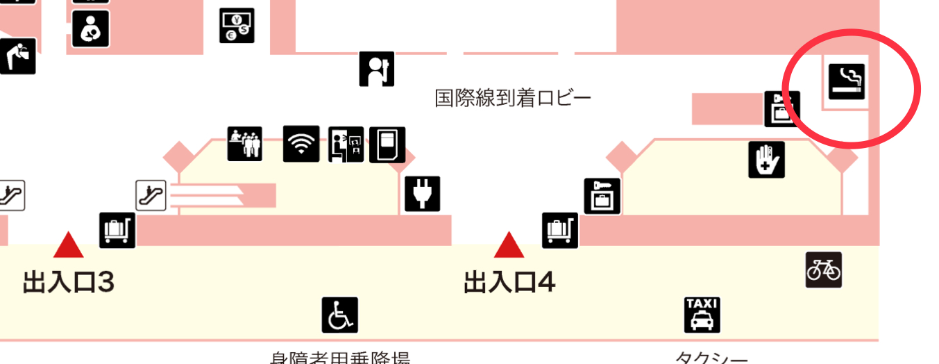 1階国際線到着ロビーには喫煙所が1か所あります。